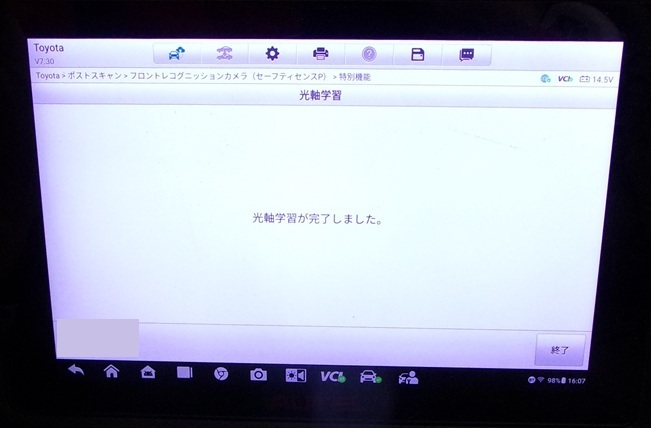 ガラス交換後、カメラの校正・調整作業のエーミングを行い完成です。