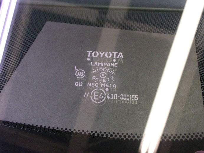 今回交換したガラスの種類は、ブルーボカシ・レインセンサー・IRカット・遮音・運転支援システム用カメラ対応のトヨタ純正ガラスです。