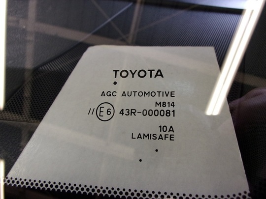 今回交換したガラスの種類は、ブルーボカシ・遮音・運転支援システム用カメラ対応のトヨタ純正ガラスです。