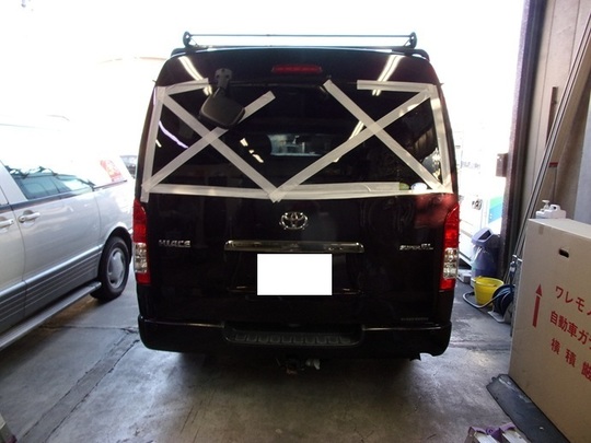 トヨタ ハイエースのリアガラス交換事例のご紹介です。