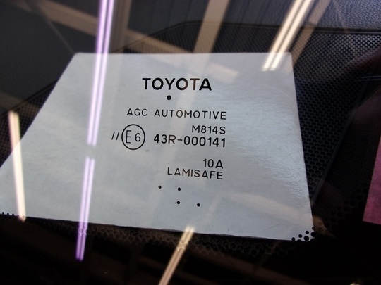 今回交換したガラスの種類は、ブルーボカシ・レインセンサー・デジタルテレビアンテナ・遮音・運転支援システム用カメラ対応のトヨタ純正ガラスです。