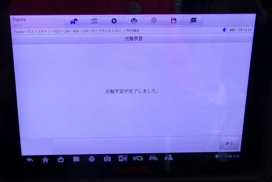 ガラス交換後、カメラの校正・調整作業のエーミングを行い完成です。