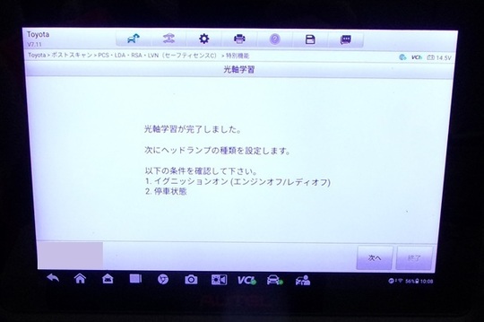 ガラス交換後、カメラの校正・調整作業のエーミングを行い完成です。