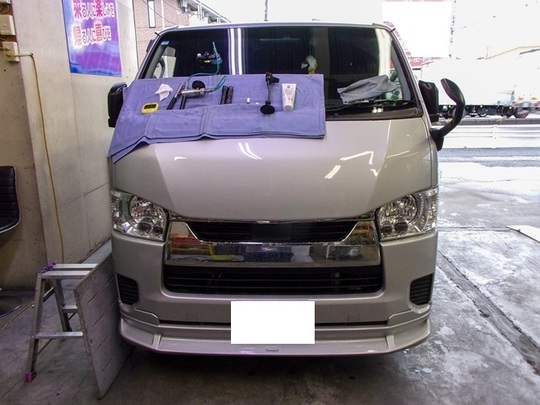 トヨタ ハイエースのフロントガラス修理事例のご紹介です。