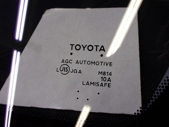 今回交換したガラスの種類は、ブルーボカシ・デジタルテレビアンテナ・遮音対応のトヨタ純正ガラスです。