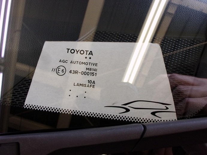 今回交換したガラスの種類は、デジタルテレビアンテナ・遮音・運転支援システム用カメラ対応のトヨタ純正ガラスです。