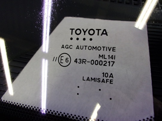 今回交換したガラスの種類は、ブルーボカシ・レインセンサー・デジタルテレビアンテナ・遮音・ドライブレコーダー用ブラケット・ヘッドアップディスプレイ・運転支援システム用カメラ対応のトヨタ純正ガラスです。