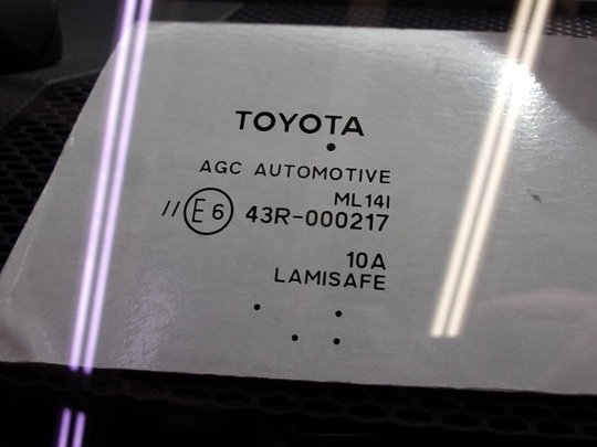 今回交換したガラスの種類は、デジタルテレビアンテナ・ヘッドアップディスプレイ・遮音・運転支援システム用カメラ対応のトヨタ純正ガラスです。