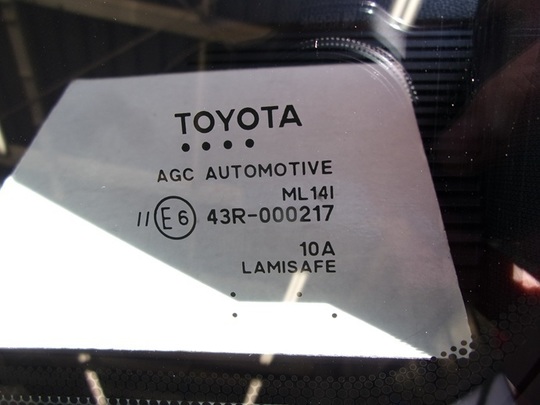 今回交換したガラスの種類は、レインセンサー・ドライブレコーダー用ブラケット・デジタルテレビアンテナ・遮音・ヘッドアップディスプレイ・運転支援システム用カメラ対応のトヨタ純正ガラスです。