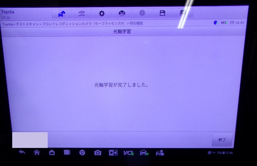 ガラス交換後、カメラの校正・調整作業のエーミングを行い完成です。