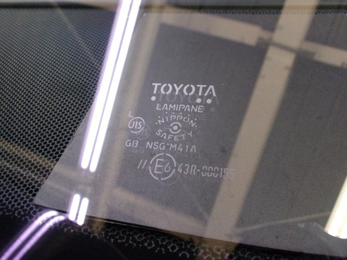 今回交換したガラスの種類は、ブルーボカシ・デジタルテレビアンテナ・遮音対応のトヨタ純正ガラスです。