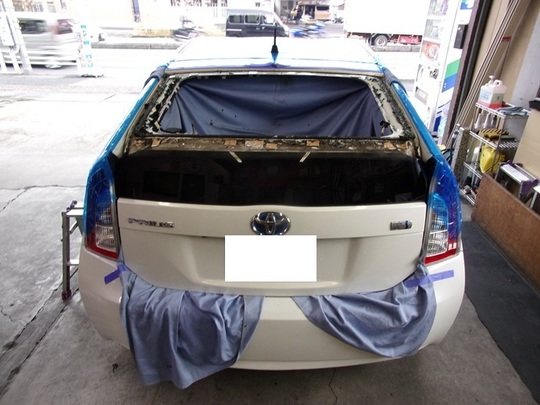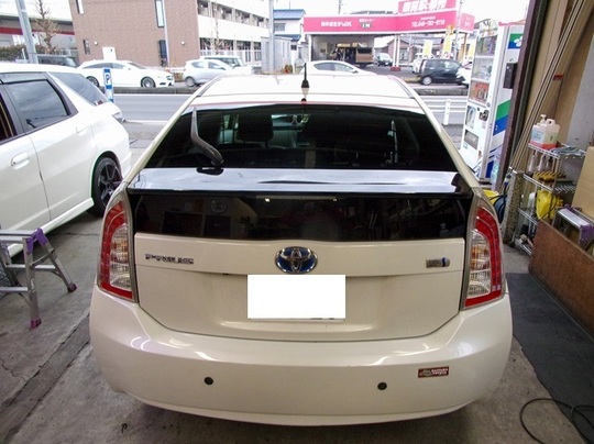 トヨタ プリウスのリアガラス交換事例のご紹介です。