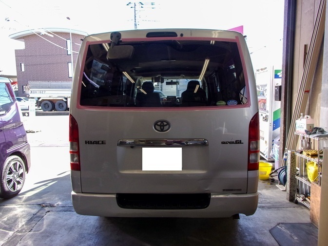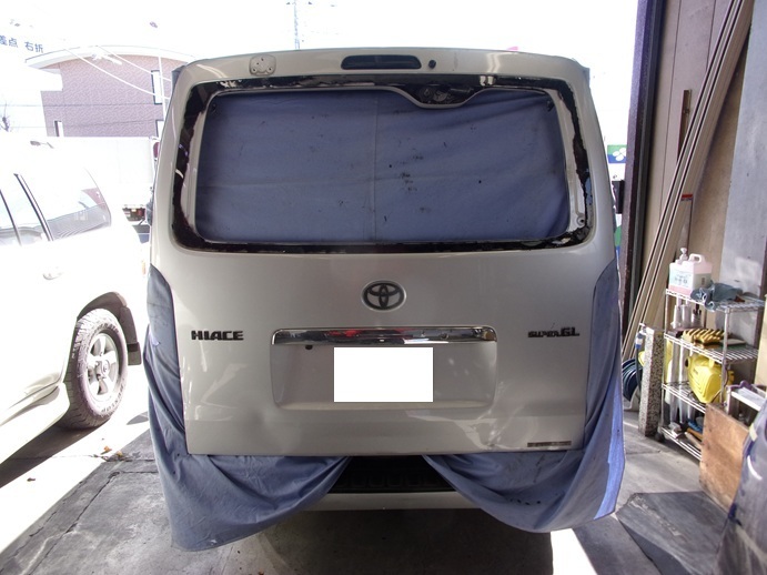 トヨタ ハイエースのリアガラス交換事例のご紹介です。