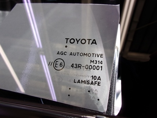 今回交換したガラスの種類は、ブルーボカシ付きのトヨタ純正ガラスです。