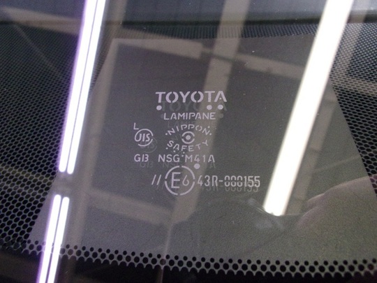 今回交換したガラスの種類は、ブルーボカシ・レインセンサー・デジタルテレビアンテナ・遮音・IRカット対応のトヨタ純正ガラスです。