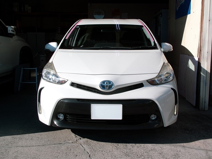 トヨタ プリウスアルファのフロントガラス交換事例のご紹介です。