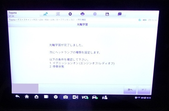 ガラス交換後、カメラの校正・調整作業のエーミングを行い完成です。