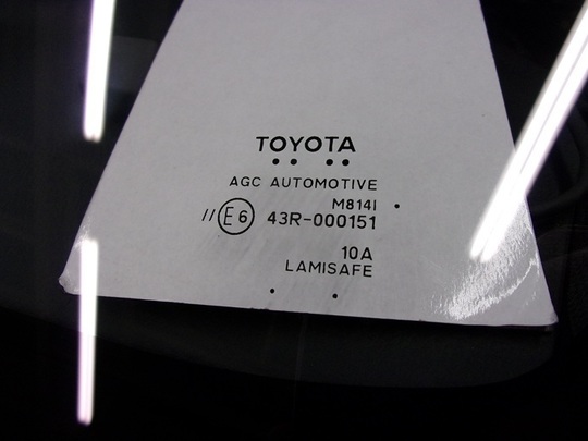 今回交換したガラスの種類は、湿度センサー・IRカット・遮音・運転支援システム用カメラ対応のトヨタ純正ガラスです。