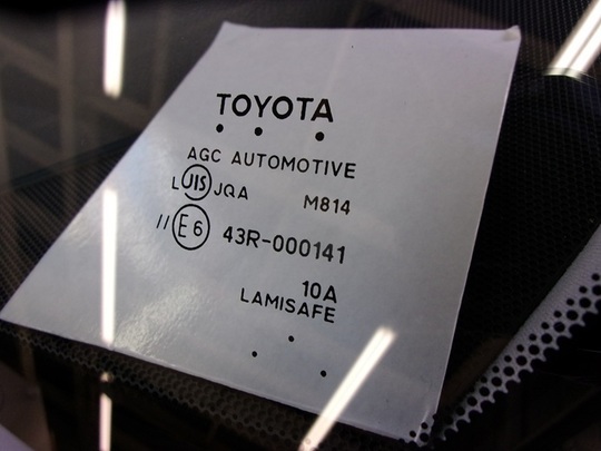 今回交換したガラスの種類は、ブルーボカシ・レインセンサー・デジタルテレビアンテナ・遮音・運転支援システム用カメラ対応のトヨタ純正ガラスです。