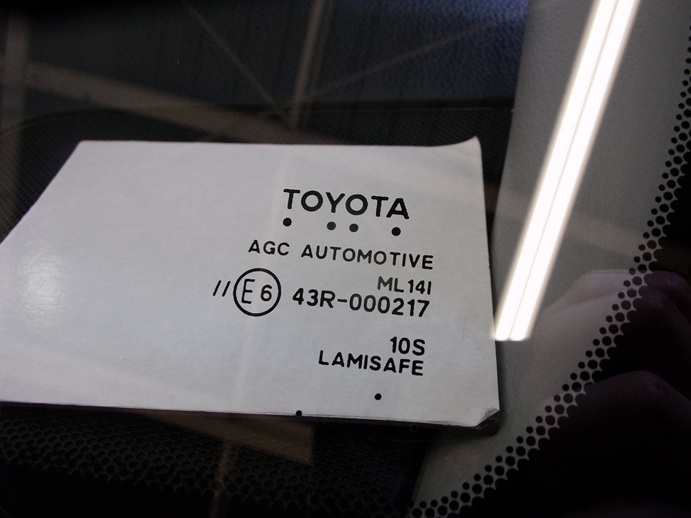今回交換したガラスの種類は、ブルーボカシ・湿度センサー・デジタルテレビアンテナ・遮音・ヘッドアップディスプレイ・運転支援システム用カメラ対応のトヨタ純正ガラスです。