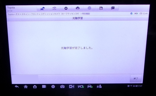 ガラス交換後、カメラの校正・調整作業のエーミングを行い完成です。