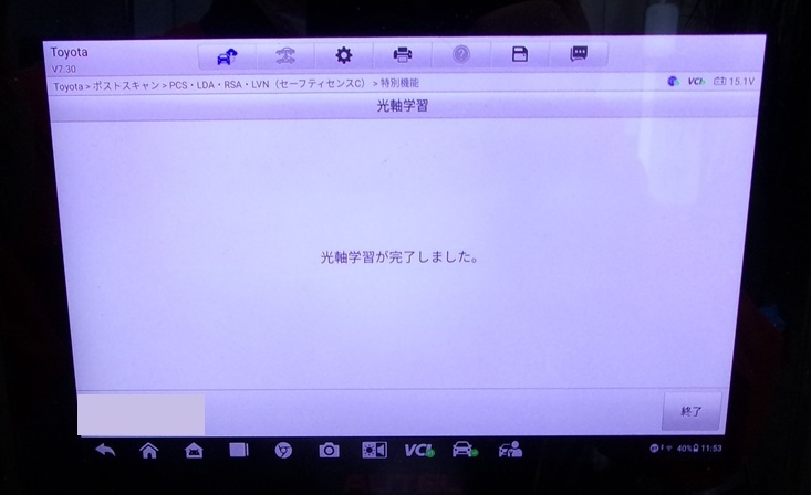 ガラス交換後、カメラの校正・調整作業のエーミングを行い完成です。