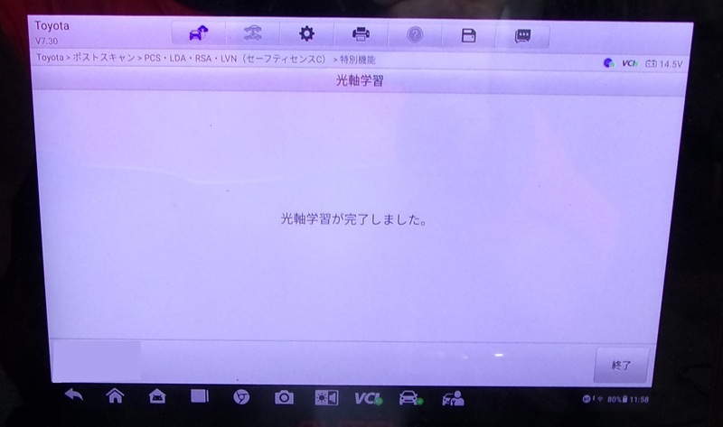 ガラス交換後、カメラの校正・調整作業のエーミングを行い完成です。