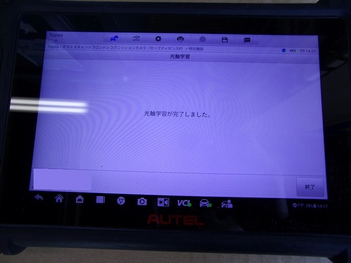 ガラス交換後、カメラの校正・調整作業のエーミングを行い完成です。